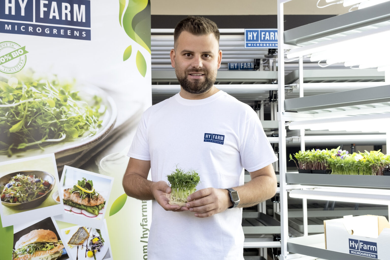 În primul rând veți avea un produs unic pe piață, datorită tehnicilor de producție. Veți avea un produs similar în fiecare săptămâna. Asta este plusul producției controlate, la interior. Acest lucru ne ajută să obținem o microplanta la același standard mereu: aceeași înălțime, densitate, culoare, crocante etc. Pe lângă acest lucru, datorită materiei prime de calitate și a tehnologiei de producție, vom obține un produs care va rezistă, va rămâne intact în bucătăria clienților, chiar și 1 săptămână. Pe lângă aceste aspecte, în producție nu se folosește pământ, ci un substrat biodegradabil, fapt care le conferă statutul de plante fără pământ. Asta va aduce un produs 100% curat în frigider, care nu necesită nici măcar spălare. Nu folosim chimicale și nici pesticide și putem produce la aceeași calitate constant indiferent de anotimp.